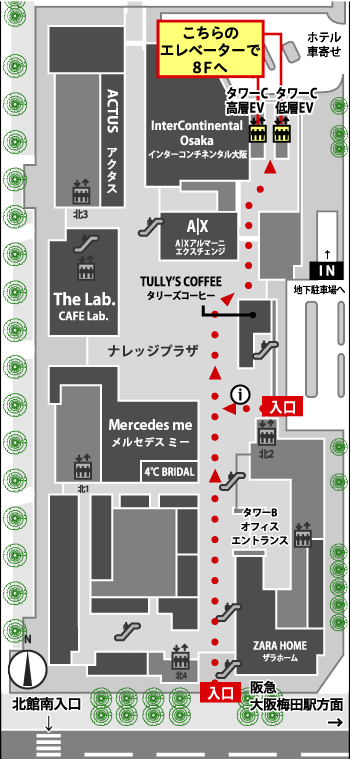 グランフロント大阪 南館からカンファレンスルームタワーBへのアクセス方法グランフロント大阪へのアクセス方法はこちら>
